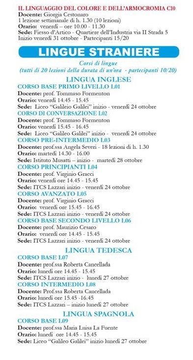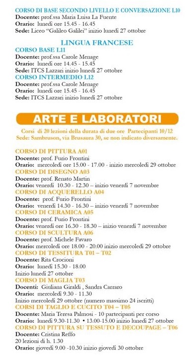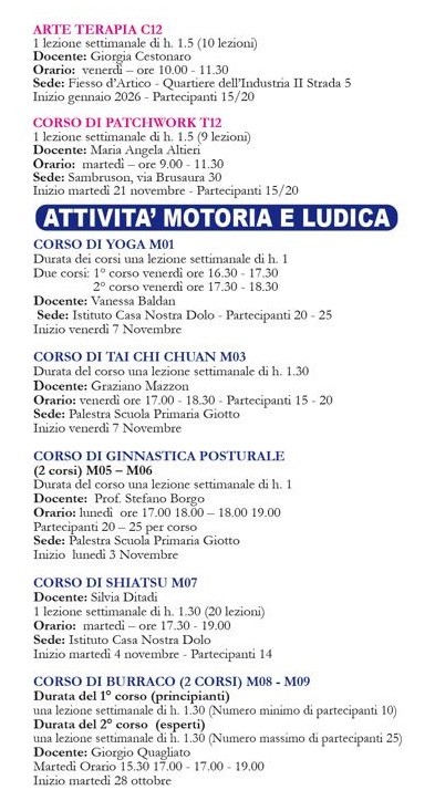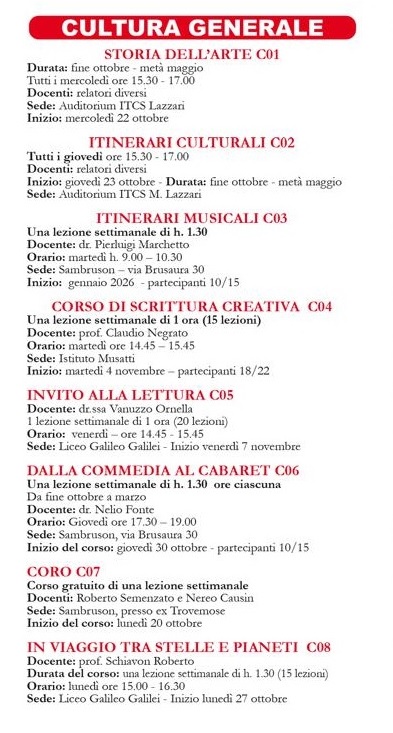 N.B. Gli incontri di STORIA DELL'ARTE iniziano MERCOLEDI 14 gennaio 2026