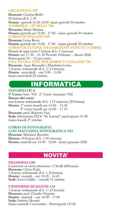 I NOSTRI CORSI PER L'A.A. 2025-2026: