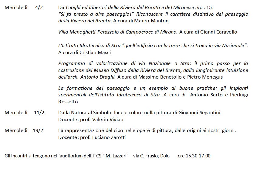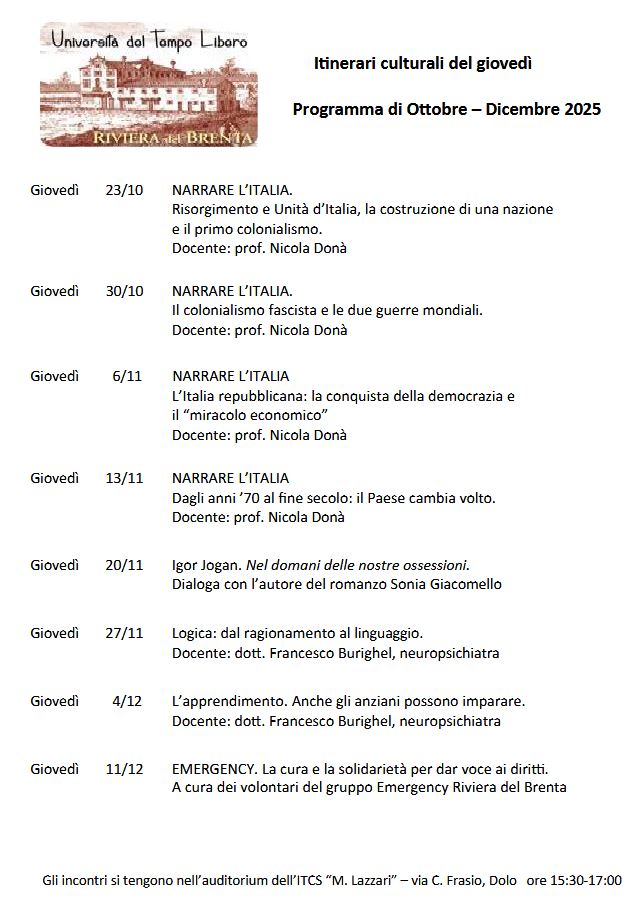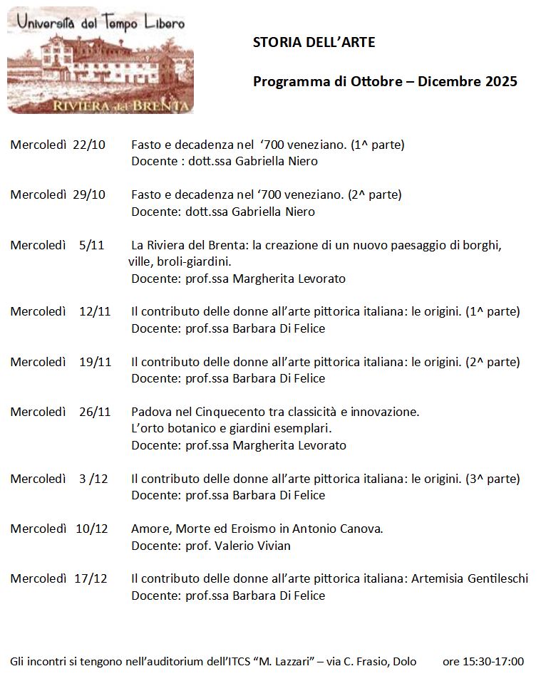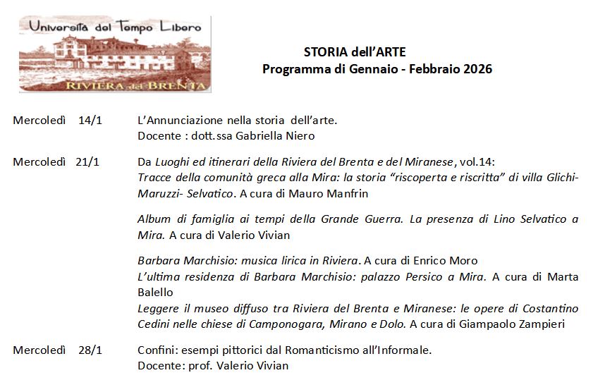 N.B. Gli incontri di STORIA DELL'ARTE iniziano MERCOLEDI 14 gennaio 2026